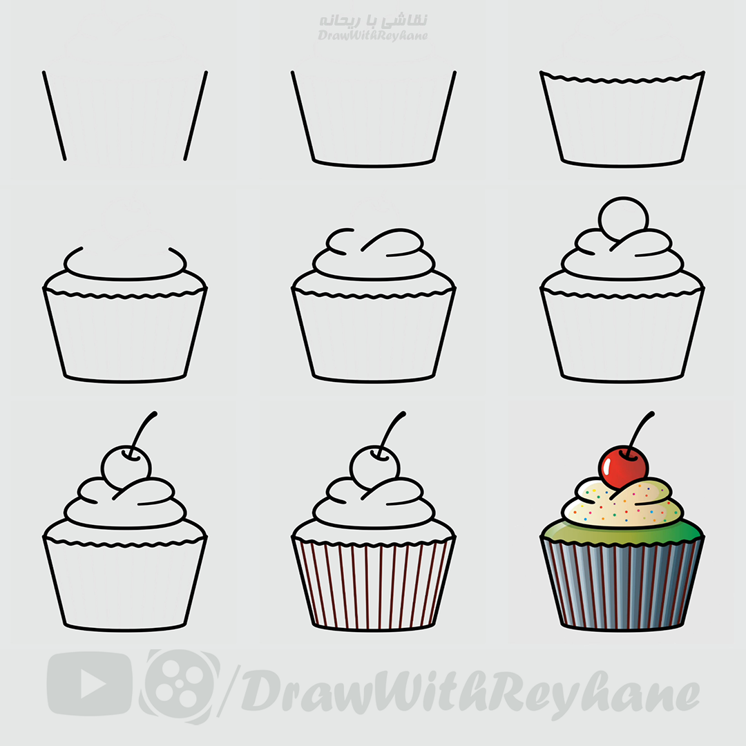 آموزش نقاشی , نقاشی کاپ کیک , آموزش نقاشی کیک , آموزش نقاشی خوراکی ها , نقاشی با ریحانه , نقاشی آسان , چطور یه کاپ کیک بکشیم , نقاشی کودکان , نقاشی کودک , ایده نقاشی کاپ کیک , نقاشی آسان و ساده